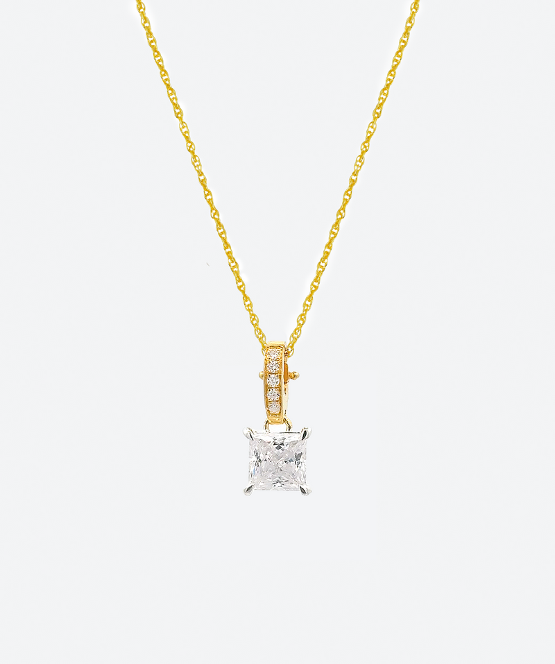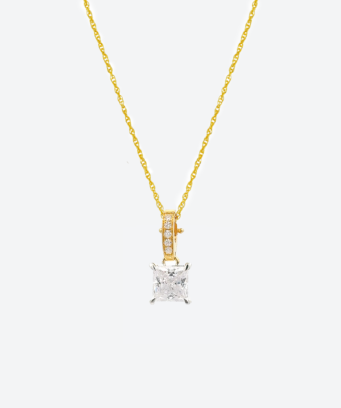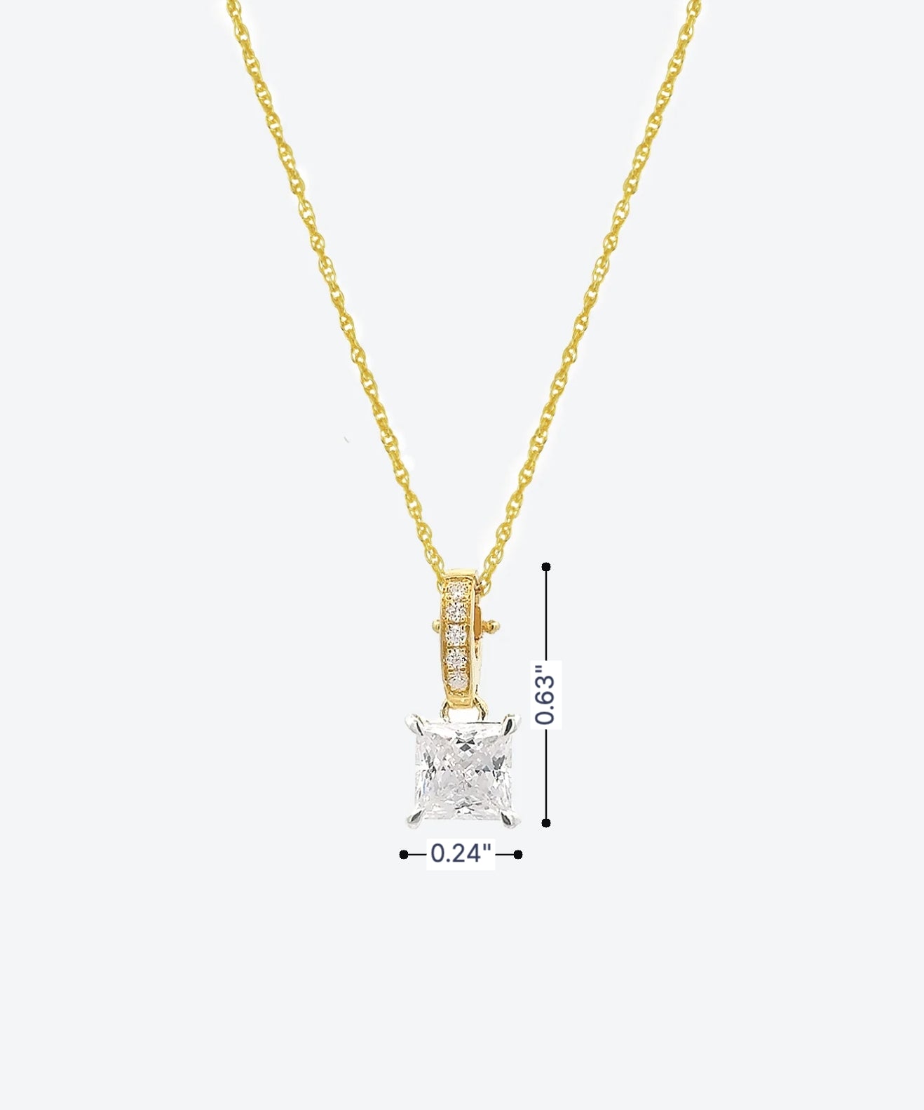 This elegant square-cut Brilliant crystal necklace in sterling silver is a beautifully crafted preview of the real lab-grown diamond piece you can create. Designed to capture the brilliance and sophistication of a true solitaire necklace, this sample lets you see and wear your design before committing to the final piece.