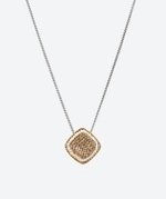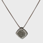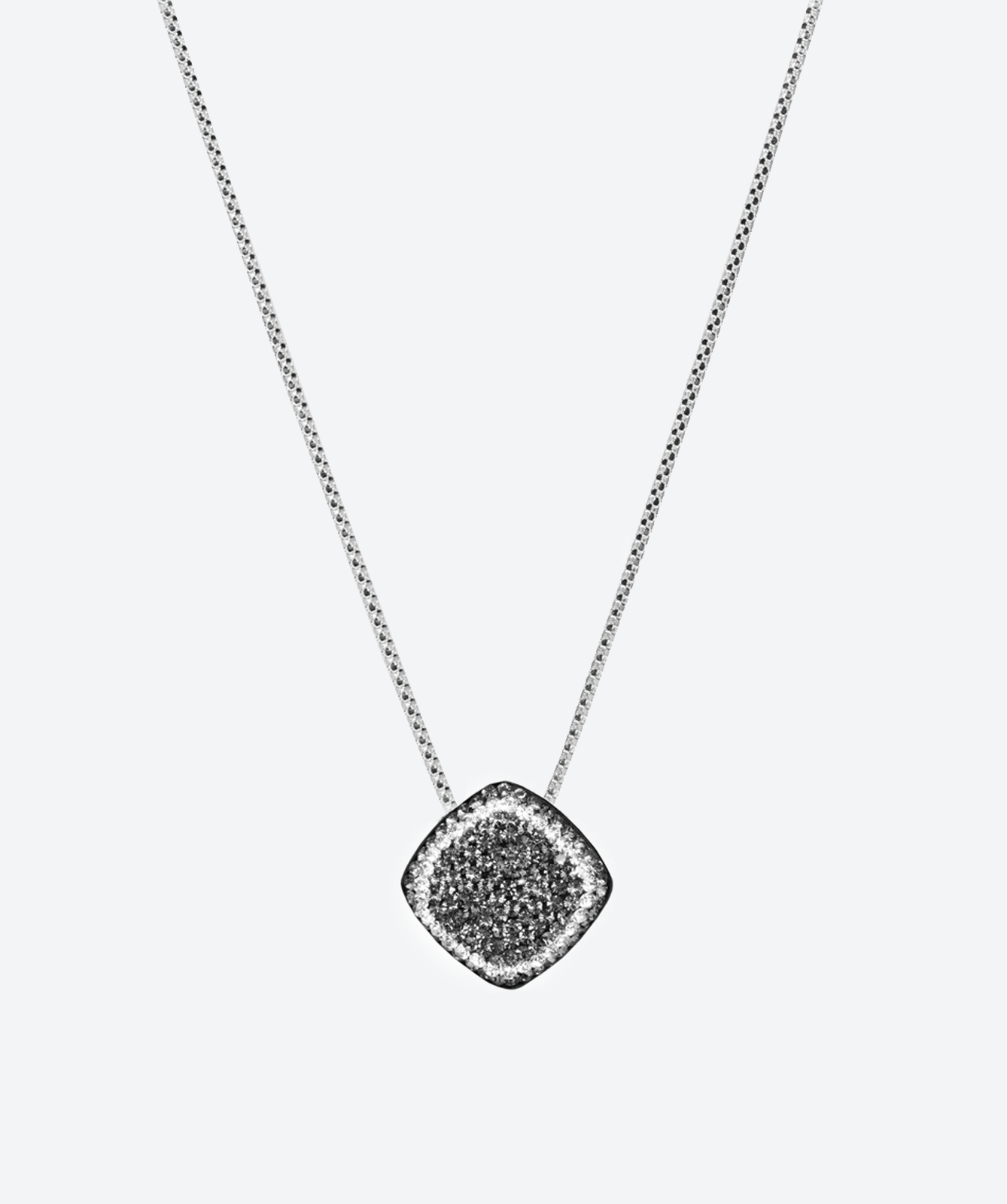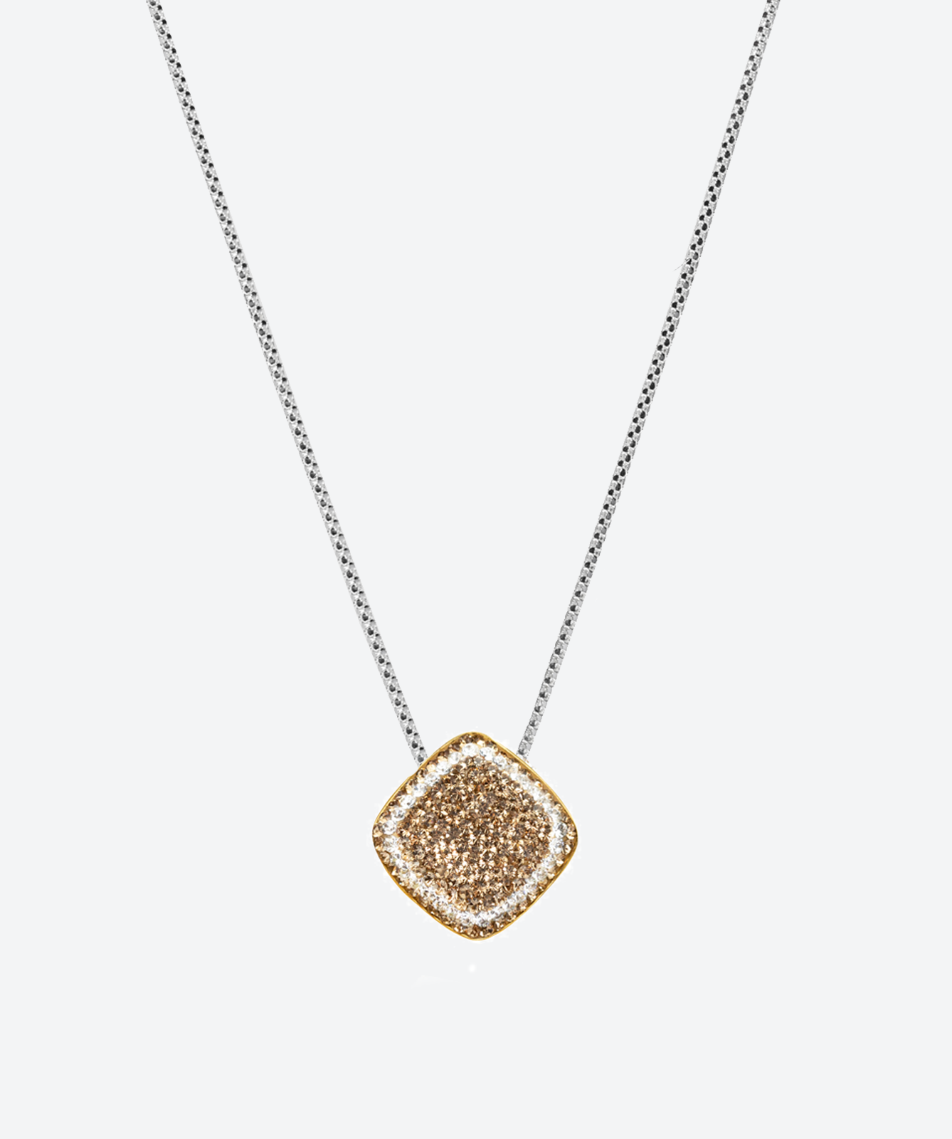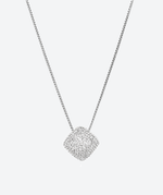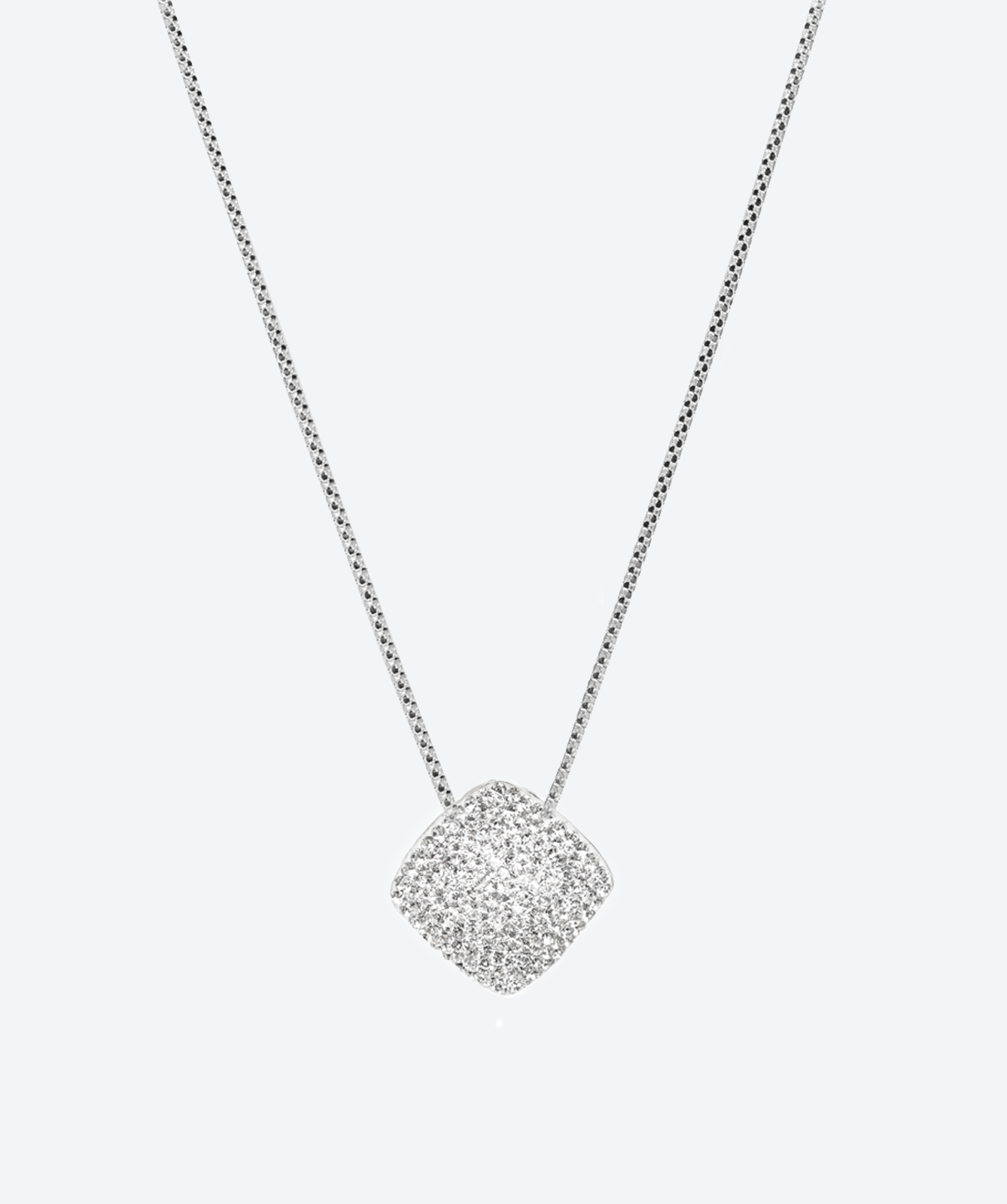The heart of the design is a captivating field of light; the central surface is densely set with a high concentration of small, brilliant crystals. This technique creates a rich, grainy texture that delivers intense sparkle from every angle. A thin, polished metal frame surrounds this crystal core, providing a sleek, modern contrast to the textured center. Perfectly sized for everyday wear, this piece defines luxury jewelry through its delicate yet dazzling presence. Add a touch of brilliance to your daily ensemble with this sophisticated geometric charm.