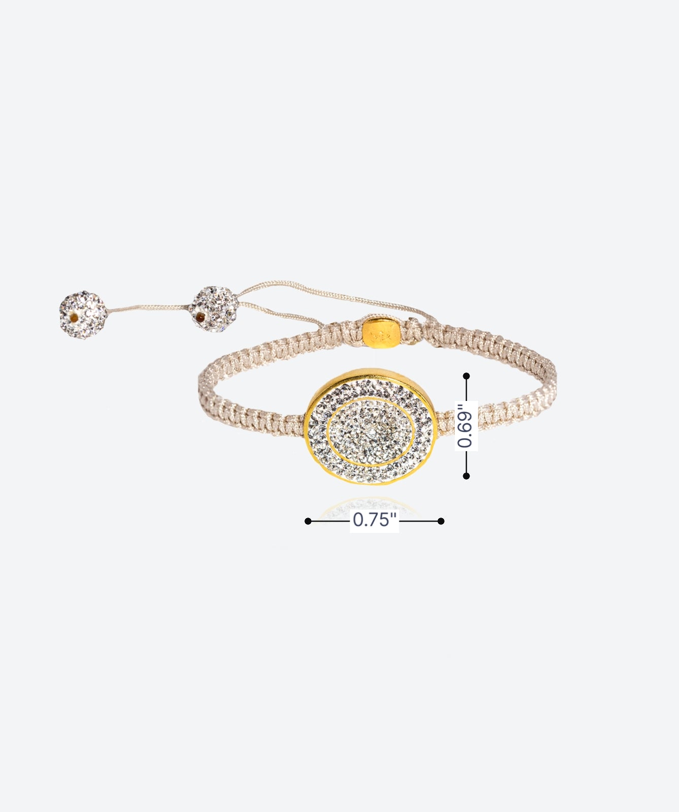 Capture refined elegance with our Dainty Oval Crystal Shamballa Bracelet. Inspired by European artisan design, this handcrafted piece features a captivating center, brimming with sparkling crystals, chosen for their understated beauty and natural allure. Delicately woven with a traditional Shamballa knotting technique, this bracelet offers a unique blend of bohemian spirit and refined luxury. Crafted with premium materials and an adjustable sliding closure for a perfect, comfortable fit, it's ideal for adding a touch of quiet sophistication to both everyday wear and special occasions. Elevate your style with this crystal core elegance.