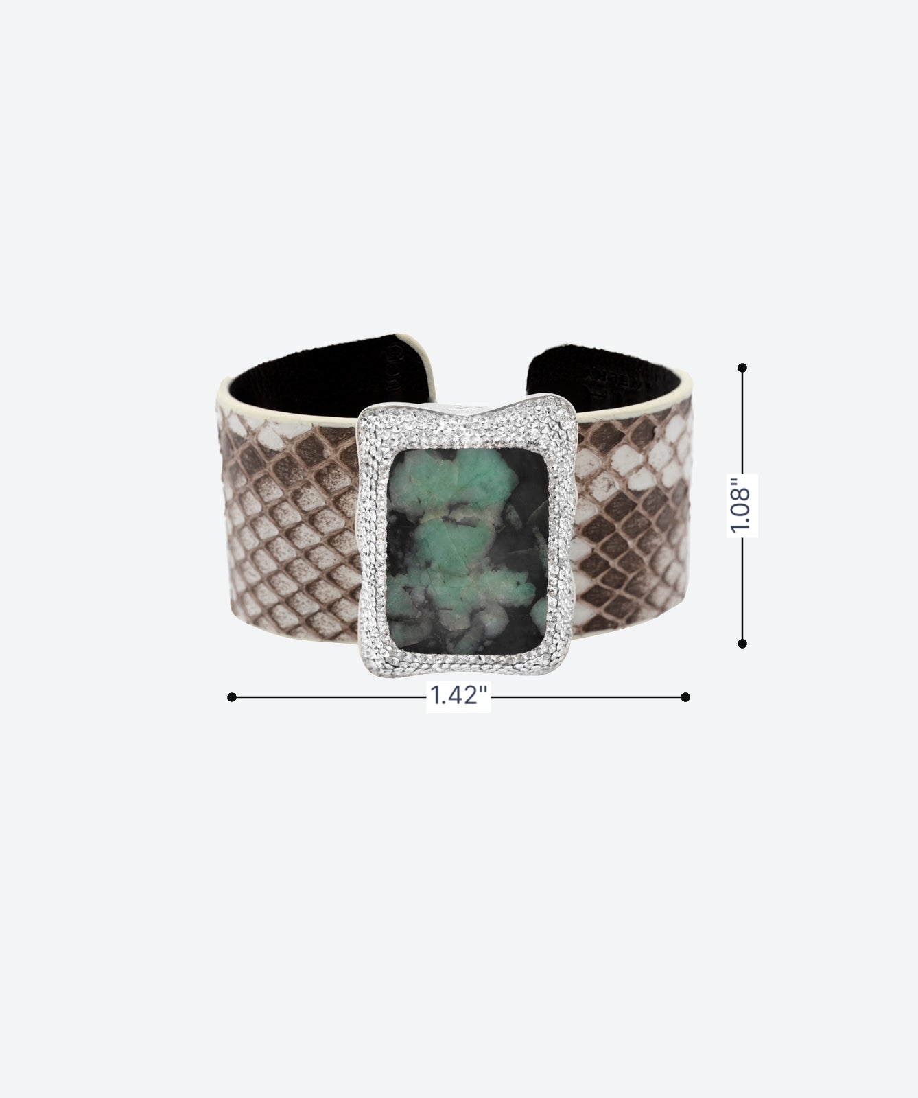 Capture bold elegance with our Exotic Gem Cuff. This luxurious piece features a glamorous exotic leather band, centered with a striking rectangular gemstone, framed by sparkling crystals. The unique texture of the leather contrasts beautifully with the brilliance of the gemstone and surrounding crystals, creating a piece that exudes opulence. Handcrafted with meticulous attention to detail, this cuff is perfect for adding high-end glamor to any ensemble.