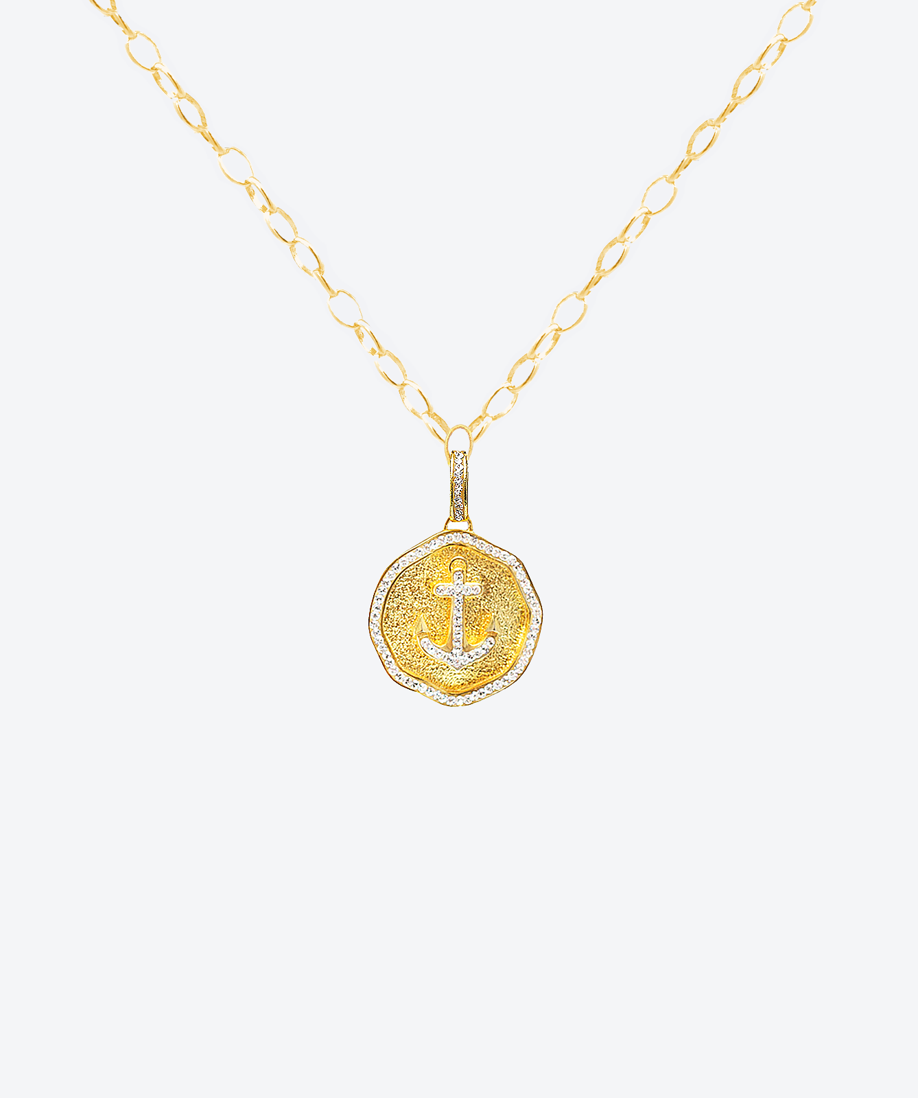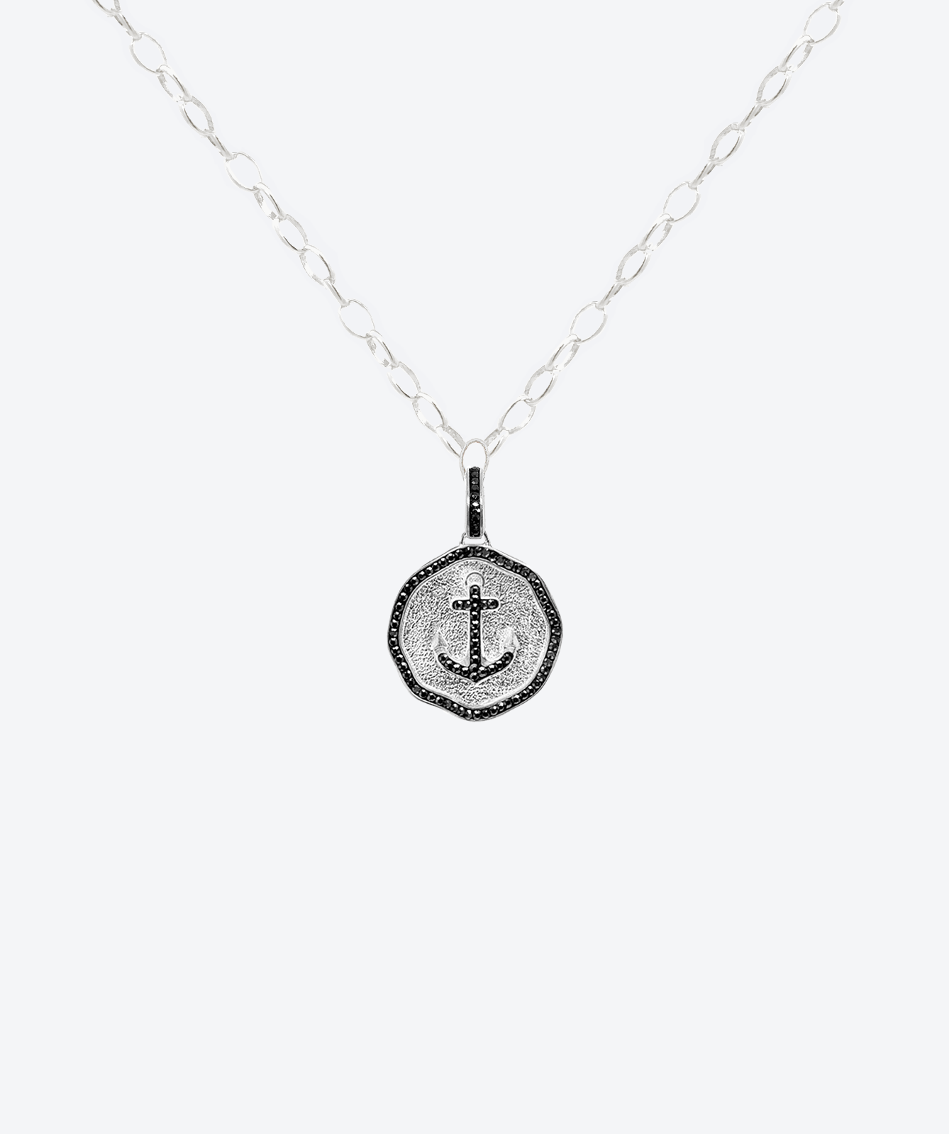 Wear a powerful symbol of hope, steadfastness, and safe journeys with the Bon Voyage Anchor Medallion Charm Necklace. Expertly created with fine European artisan design, this handcrafted medallion features a captivating circular medallion. The central motif is a classic anchor, meticulously detailed with shimmering brilliant crystals that bring a striking contrast and elegant sparkle to its timeless silhouette. The textured, bright finish of the medallion's surface adds depth and sophistication, evoking the vastness of the sea.