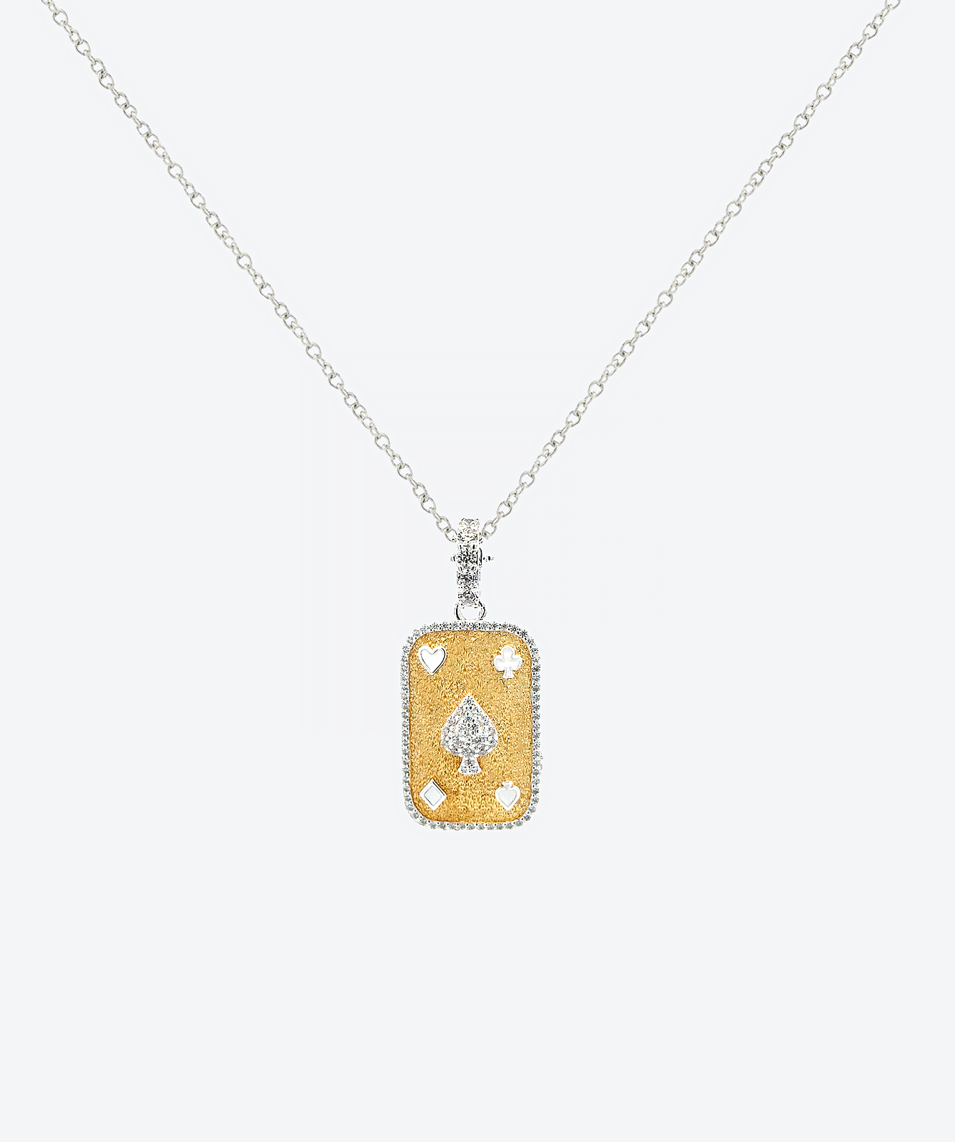Make a bold statement with our Crystal Spade Rectangle Medallion Necklace, a tribute to sharp style and elegant design. This handcrafted artisan necklace features a striking rectangular medallion, meticulously adorned with shimmering Swarovski™ crystals that form the iconic spade symbol from a deck of cards. This piece perfectly blends a classic motif with modern, geometric lines.