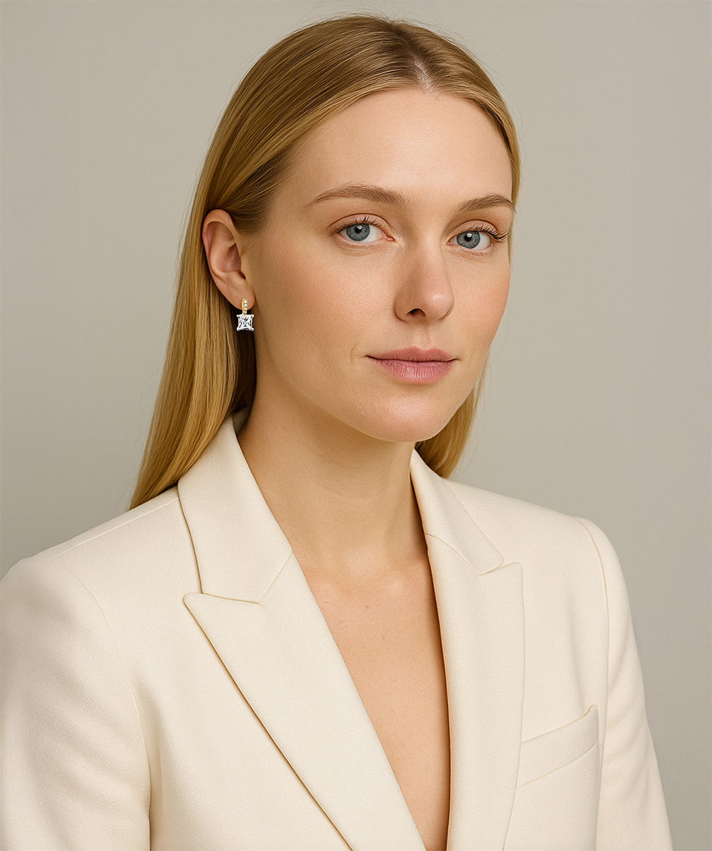 These huggie-style Brilliant crystal earrings in sterling silver are a stunning preview of the elegant lab-grown diamond earrings you can create. Designed to reflect the brilliance and timeless beauty of your final pair, this sample lets you see and wear your design before committing to the real thing.