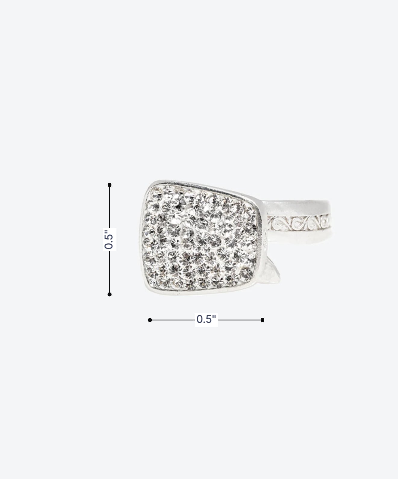 This handcrafted gold ring boasts a captivating uneven square shape that adds a touch of unexpected drama. At its heart, a mesmerizing cluster of sparkling Swarovski® crystals shimmers with unparalleled brilliance. This luxury jewelry piece is perfect for the modern woman who seeks to elevate her style with a touch of European artisan design. The unique silhouette and dazzling crystals make this ring a true statement piece that will turn heads. Capture timeless elegance with this exquisite and unique ring.