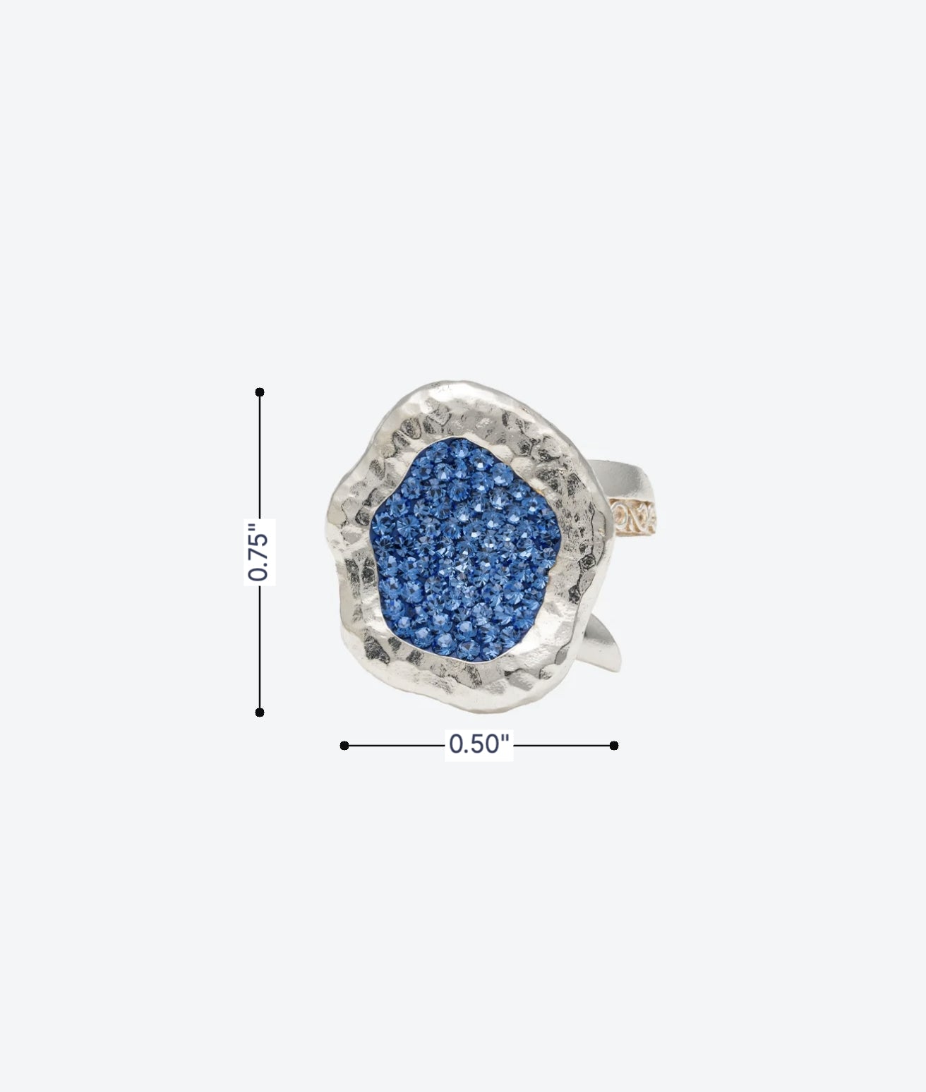 This captivating Geode Ring is a true statement piece. Crafted with meticulous attention to detail, this gold ring features a mesmerizing cluster of sparkling Swarovski® crystals at its center, evoking the intricate beauty of a natural geode. The unique hammered finish adds a touch of rustic charm, while the overall design exudes an aura of sparkling opulence. Handcrafted by skilled European artisans, this ring is a testament to exceptional craftsmanship and timeless style.