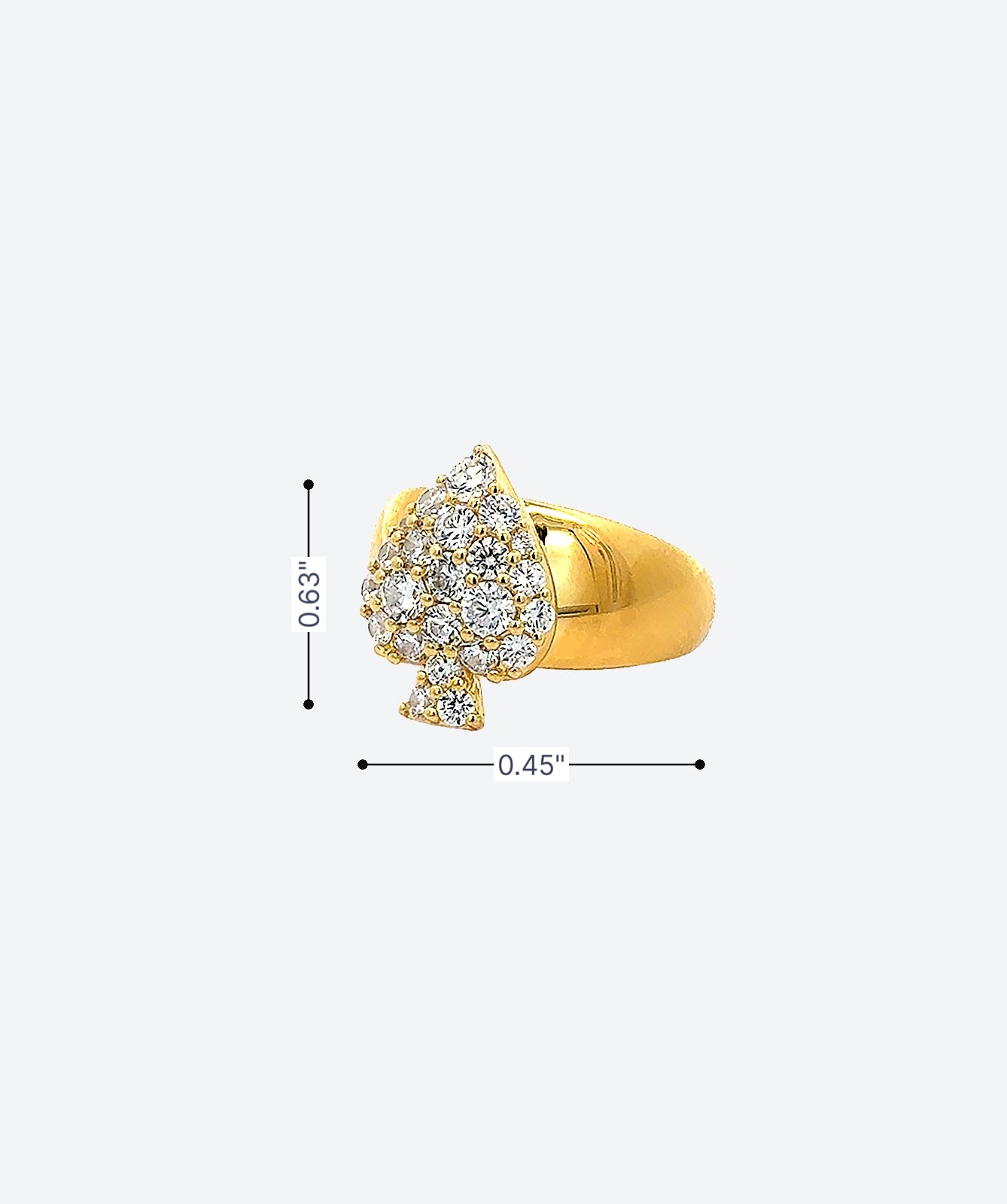 Embrace the allure of the unexpected with the Spade Pave Ring, a captivating statement piece crafted by skilled European artisans. This unique ring features a spade motif entirely encrusted with a dazzling array of sparkling Swarovski® crystals, creating a mesmerizing display of light and brilliance. A contemporary interpretation of a classic symbol, this ring exudes a sense of playful sophistication. Elevate your style with this extraordinary piece of jewelry – a true conversation starter.