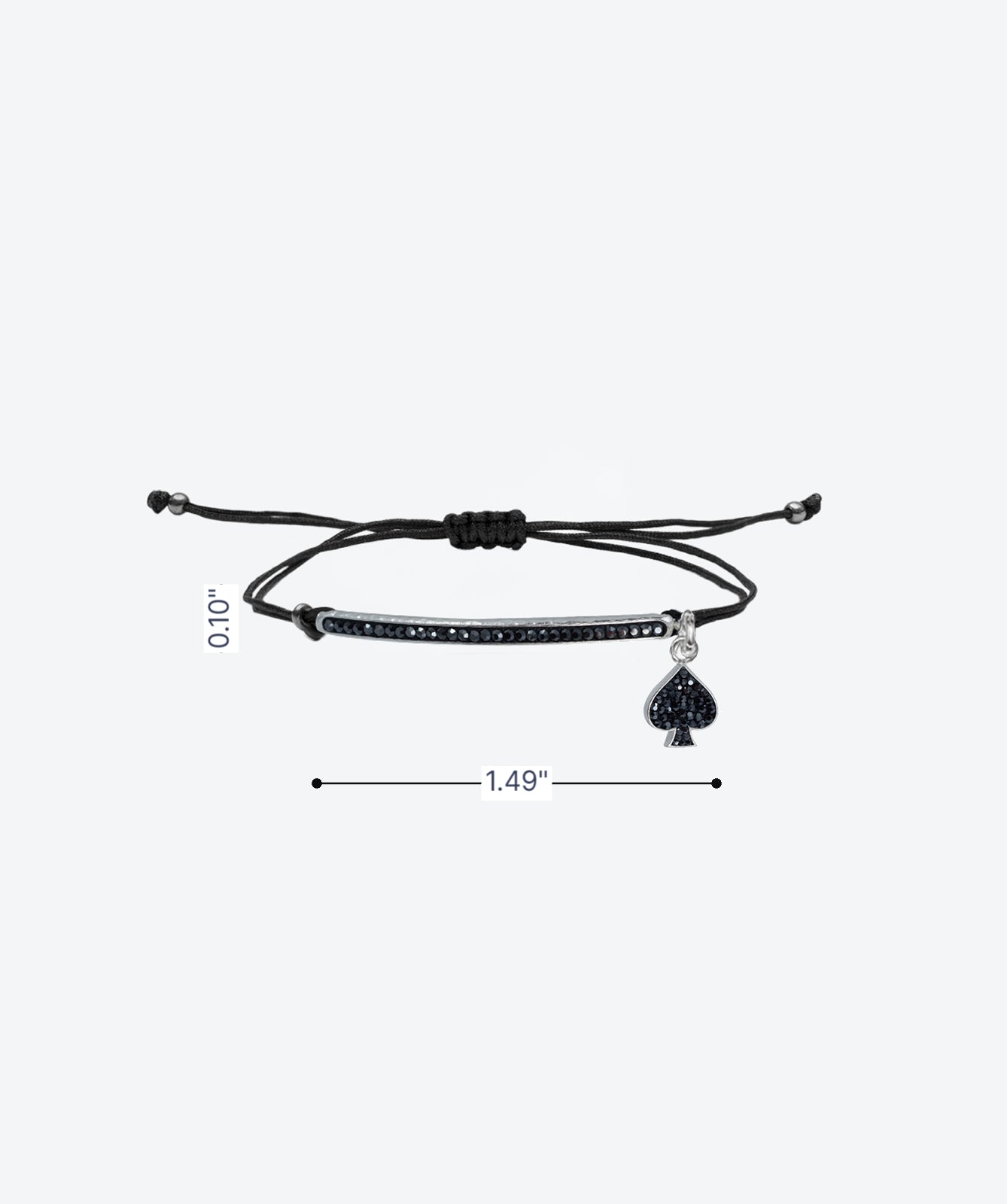 Capture timeless elegance with our Spade Bar Slide Bracelet. This luxury jewelry piece features a sleek bar design, adorned with a line of sparkling crystals, and accented with a chic spade charm. The clean, modern aesthetic and European artisan craftsmanship create a sophisticated look. The adjustable slide closure ensures a perfect fit. Elevate your style with this linear sparkle and spade charm bracelet.