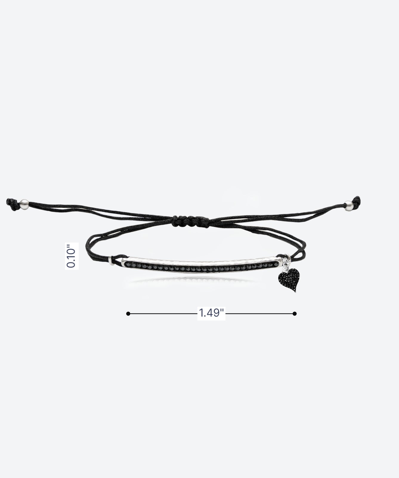 Capture timeless elegance with our Love Rules Heart Bar Slide Bracelet. This luxury jewelry piece features a sleek bar design, adorned with a line of sparkling crystals, and accented with a chic heart charm. The clean, modern aesthetic and European artisan craftsmanship create a sophisticated look. The adjustable slide closure ensures a perfect fit. Elevate your style with this linear sparkle and heart charm bracelet.