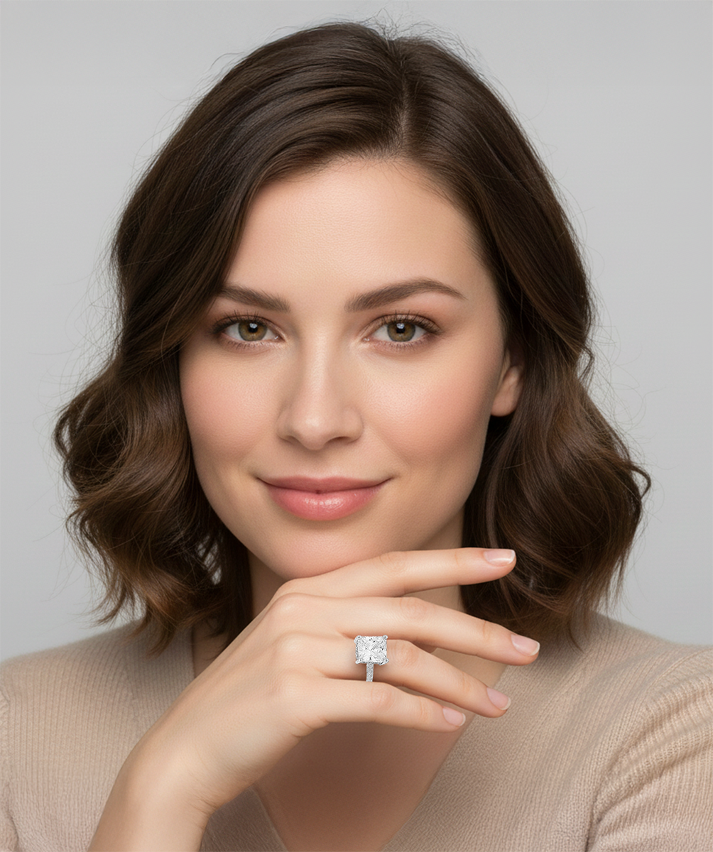 This exquisite radiant square-cut Brilliant crystal ring in sterling silver is a stunning preview of what could be your perfect engagement ring. Designed to showcase the beauty and brilliance of a real lab-grown diamond, this pre-made design allows you to visualize and experience your dream ring before committing to the final piece.