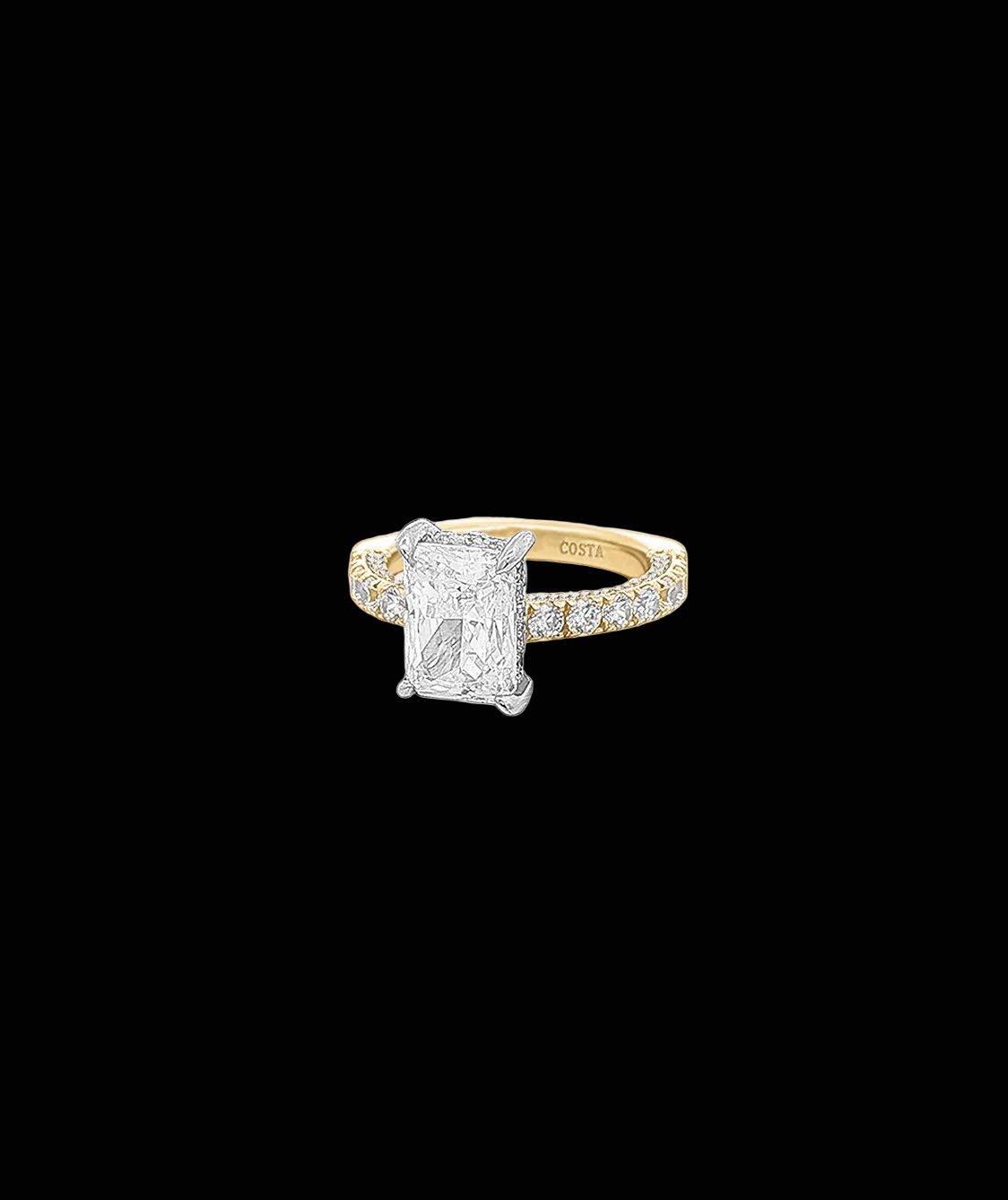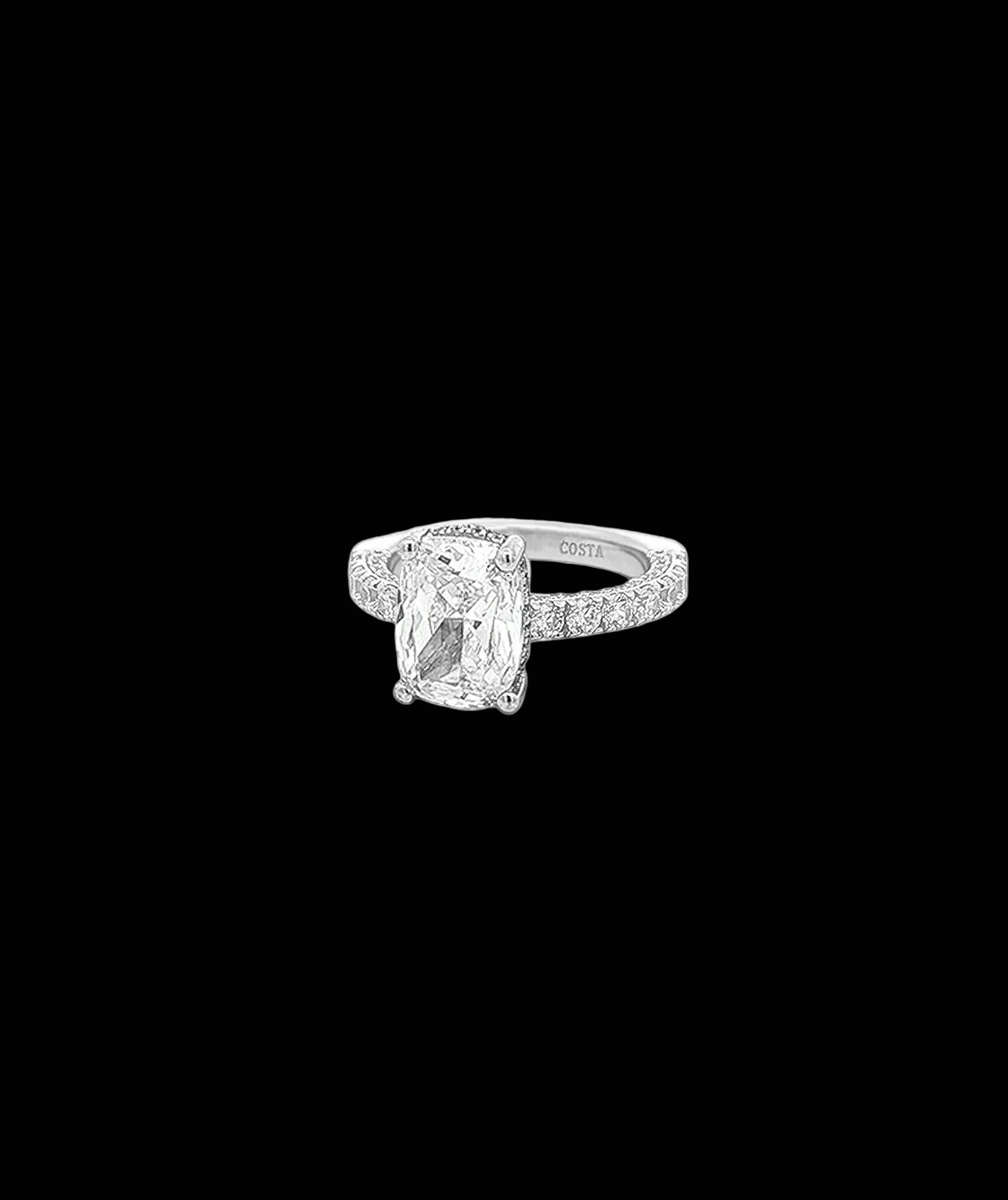 Whether you prefer the warmth of a gold finish or the crisp shine of silver, this versatile piece remains equally stunning. Its architectural integrity and radiant accents make it a perfect choice for a modern engagement ring or a high-end statement piece for any collection.