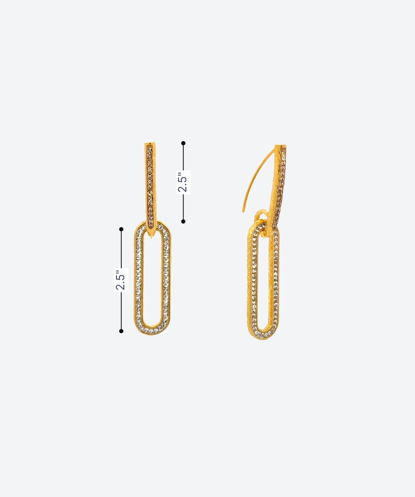 Capture modern elegance with these handcrafted artisan earrings, where bold design meets brilliant craftsmanship. These unique loop earrings feature a striking link silhouette, meticulously adorned with shimmering Swarovski™ crystals. The dual-tone design adds a captivating dimension, ensuring a dynamic look that transitions effortlessly from day to night.