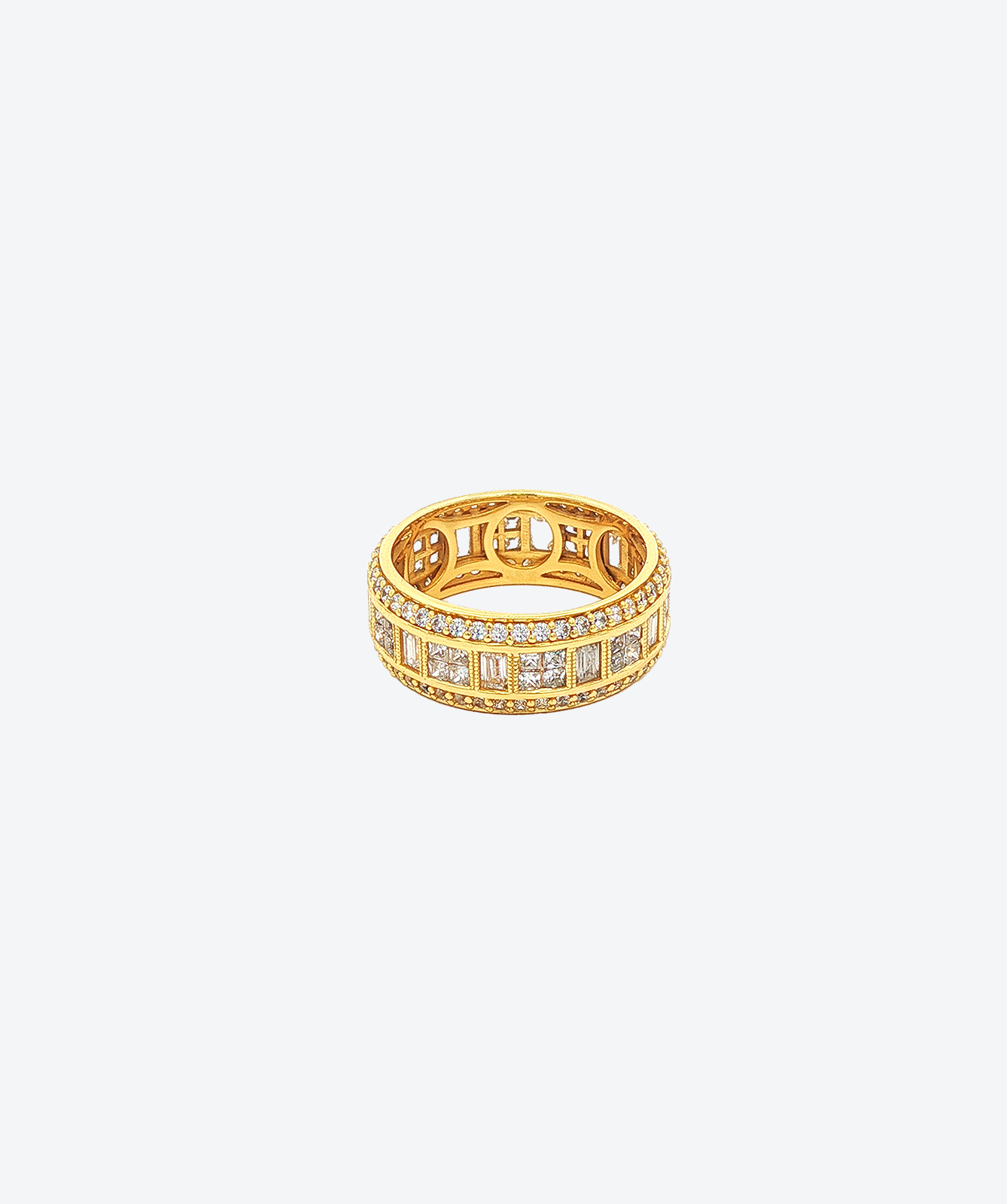 Indulge in the bold sophistication of the Wide Mosaic Ring, a luxury jewelry masterpiece and a testament to exquisite European artisan design. This wide, robust band projects a commanding yet luxurious presence, meticulously handcrafted for the discerning collector.