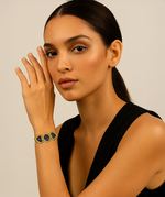Capture refined elegance with our 3 Geode Slide Bracelet. This luxury jewelry piece features three delicate charms, each showcasing a cluster of sparkling Swarovski® crystals at its center, subtly evoking the intricate beauty of natural geodes. The fine hammered finish adds a touch of understated rustic charm, while the overall design exudes an aura of delicate opulence. Handcrafted by skilled European artisans, this bracelet features a slender sliding design for adjustable comfort. This handcrafted bracelet is perfect for adding a touch of unique, triple geode charm to any ensemble. Elevate your style with this subtly opulent piece.