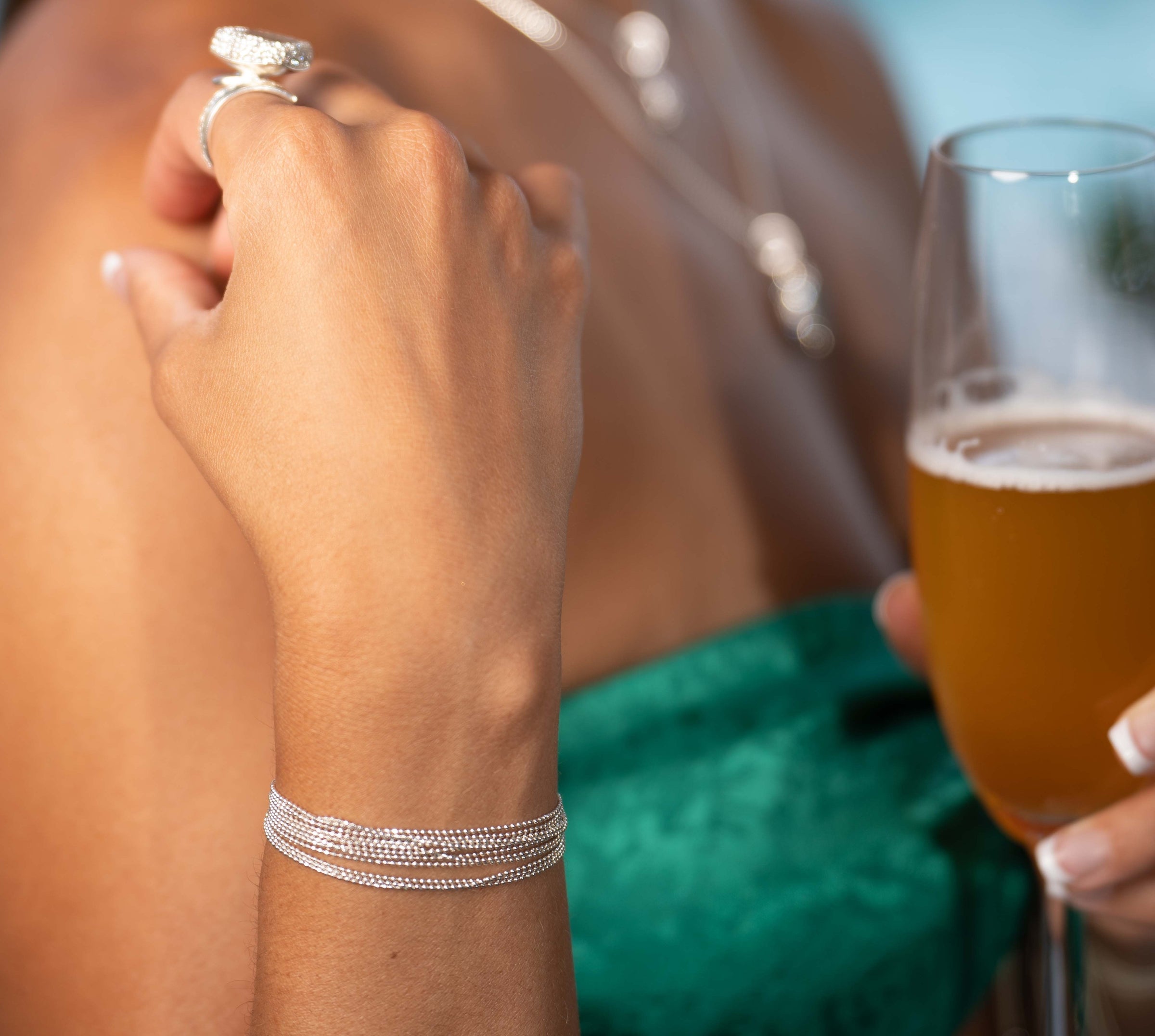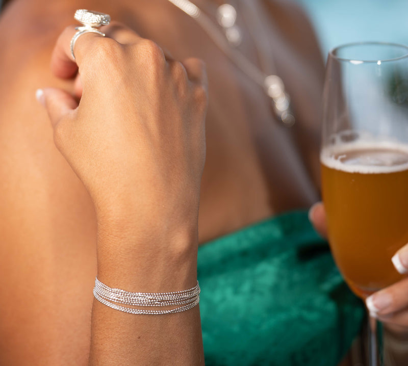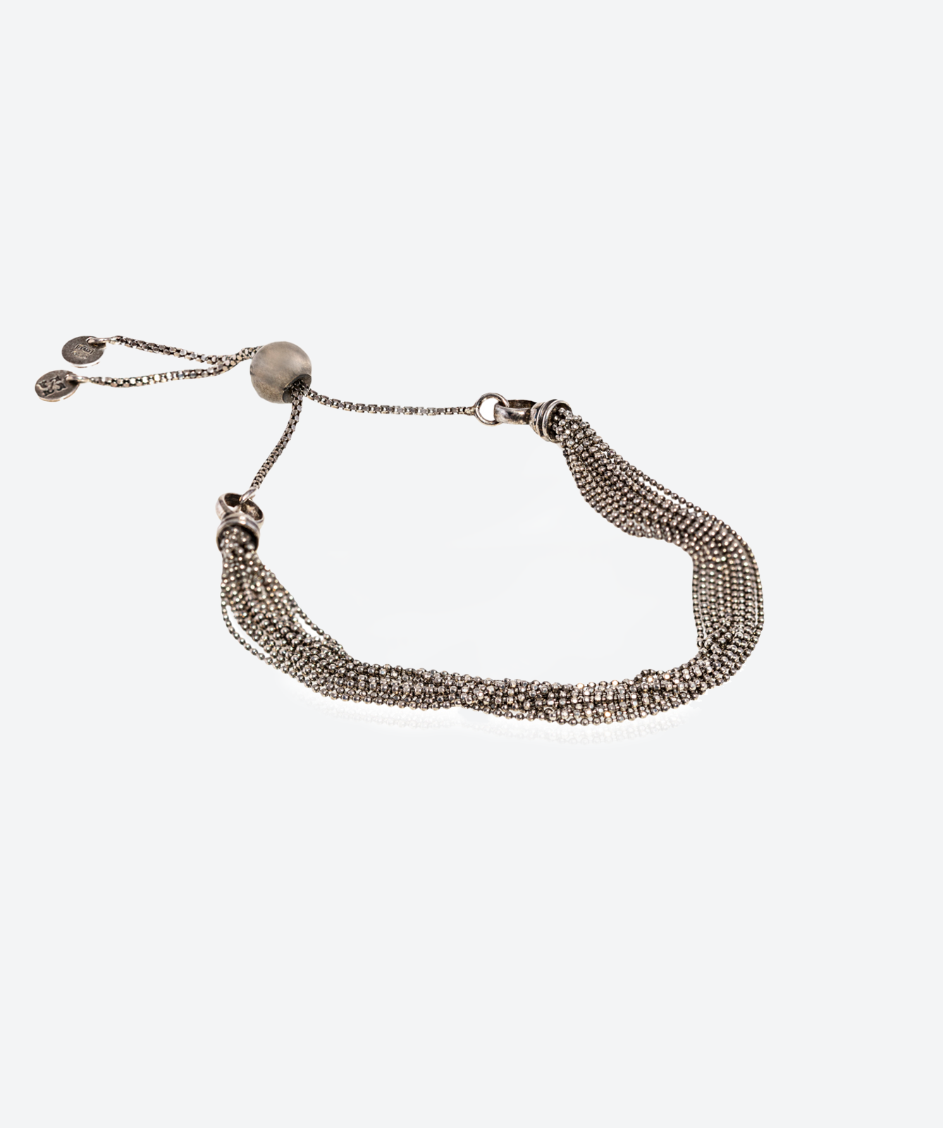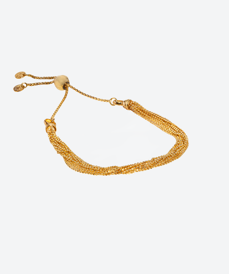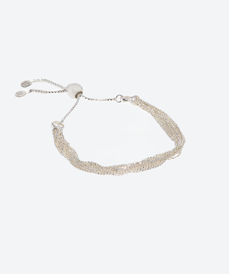 Elevate your style with our Multi Chain Slide Bracelet. This luxury jewelry piece features a captivating design with multiple delicate chains, creating a layered and sophisticated look. Each chain is adorned with subtle sparkling accents, adding a touch of brilliance. Handcrafted with European artisan precision, this bracelet offers a unique and elegant statement. The adjustable slide closure ensures a perfect, comfortable fit. Capture timeless elegance with this layered chain bracelet.