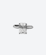 This exquisite radiant-cut Brilliant crystal ring in sterling silver is a stunning preview of what could be your perfect engagement ring. Designed to showcase the beauty and brilliance of a real lab-grown diamond, this pre-made design allows you to visualize and experience your dream ring before committing to the final piece.