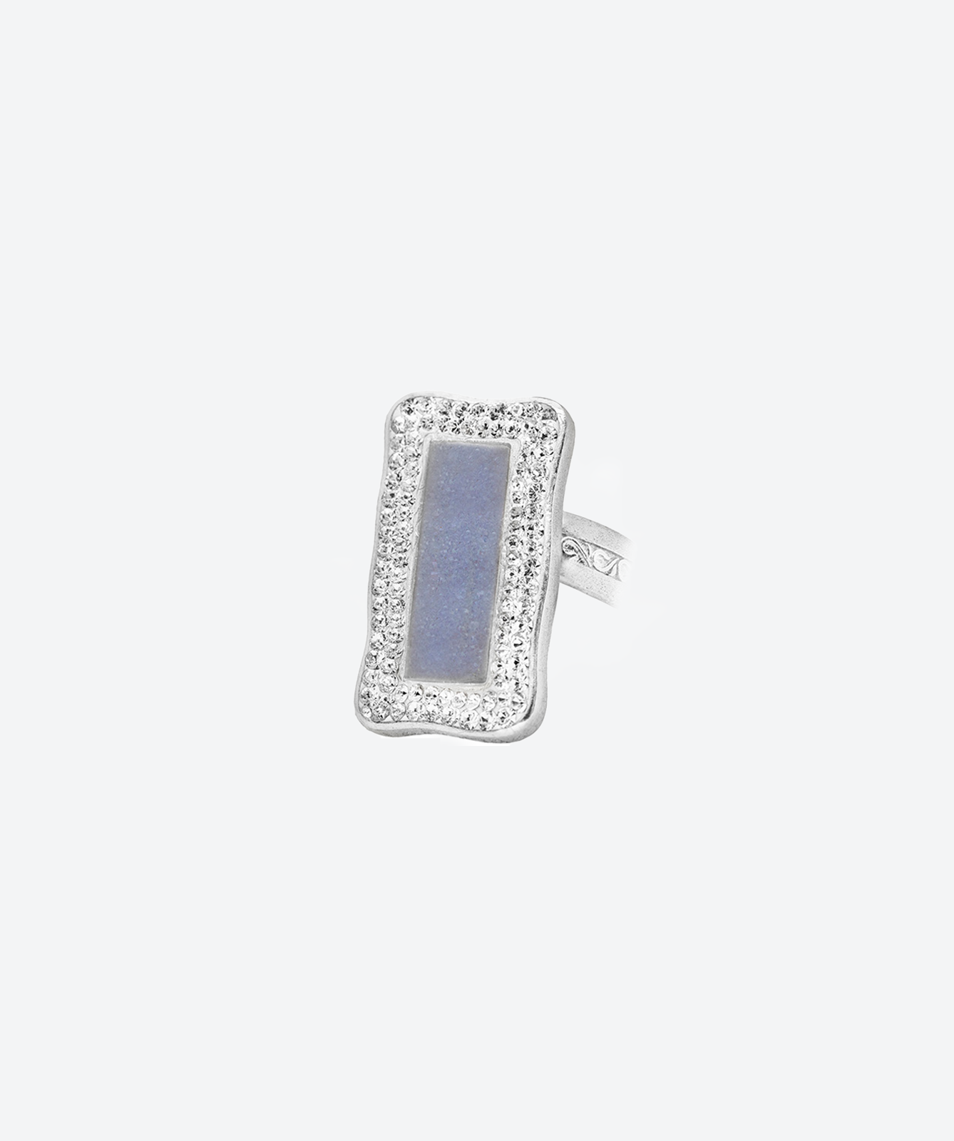 This timeless ring showcases a stunning rectangular gemstone set in a bezel entirely encrusted with sparkling Swarovski® crystals. Every facet of the precious stone reflects the light, creating a dazzling effect. Crafted by skilled European artisans, this handcrafted piece combines tradition with a contemporary flair. The combination of the center gemstone and the surrounding Swarovski® crystals gives this piece an air of luxury and sophistication. Elevate your style with this unique and eye-catching ring.