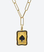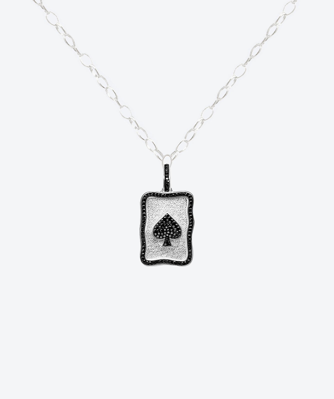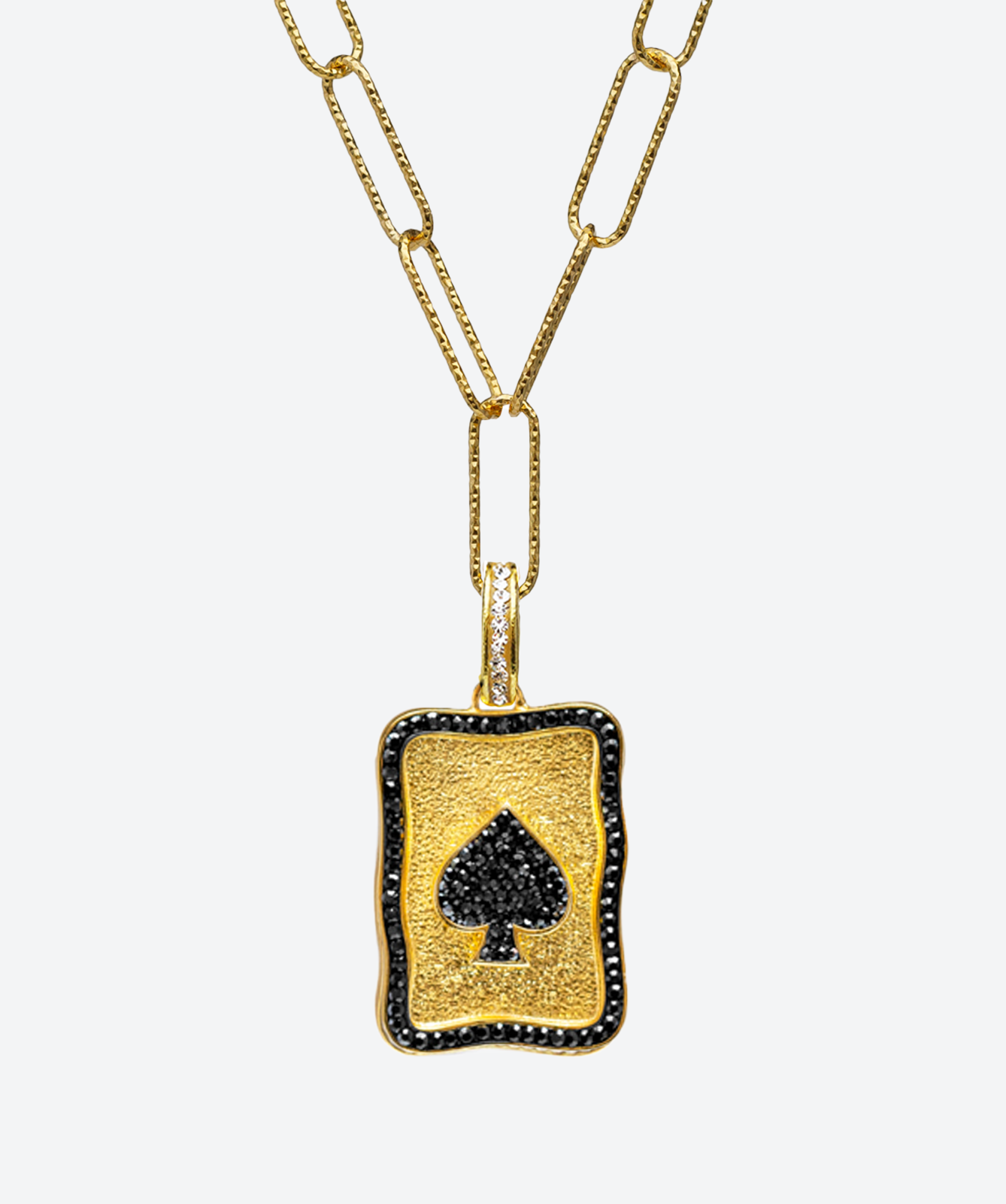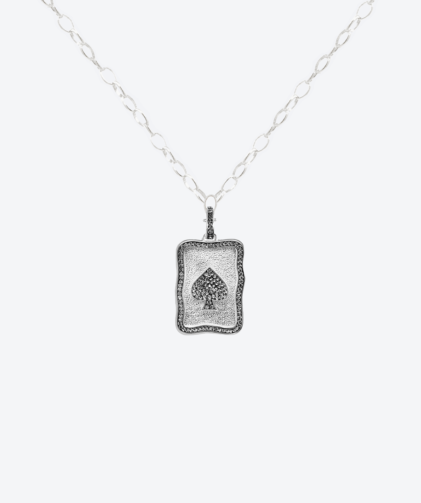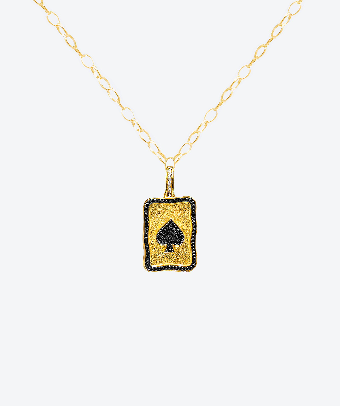 Stack the deck in your favor with the Spade Medallion Charm Necklace, a daring statement piece rooted in fine European artisan design. This handcrafted pendant captures the thrill of the game with a rectangular silhouette reminiscent of a playing card, finished with unique, irregular textured edges for an authentic artisanal feel.