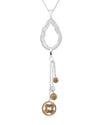 Stop traffic with this brilliant 2 color reversible Swarovski™ crystal organic tear shaped pendant with 2 Tone removable illuminating crystal logo quatrefoil tassel. Fully adjustable 32" chain allows you to wear short and adorn your neckline or wear long with your favorite tunic dress or stylish jeans.